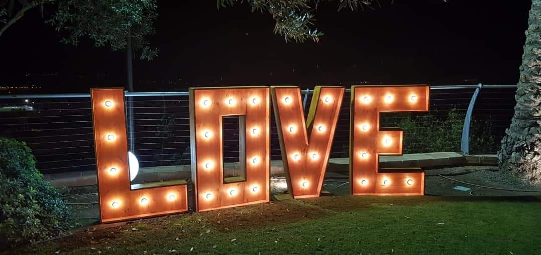 Realizadas en madera maciza iluminada con bombillas vintage. Medidas: 150 cm de alto, por unos 80cm de largo y 20cm de ancho. Completamente personalizable: podemos tematizarla al gusto.