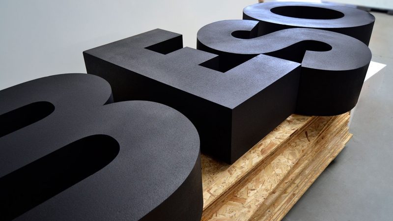 Múltiples posibilidades de personalización (tipografía, lacado, vinilado…). Cortadas por láser a gran tamaño (hasta 120x200cm por unidad). Material: Poliestireno expandido.