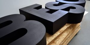 Medidas de cada letra: 1,5m de alto, 80cm de largo y 20cm de ancho.
